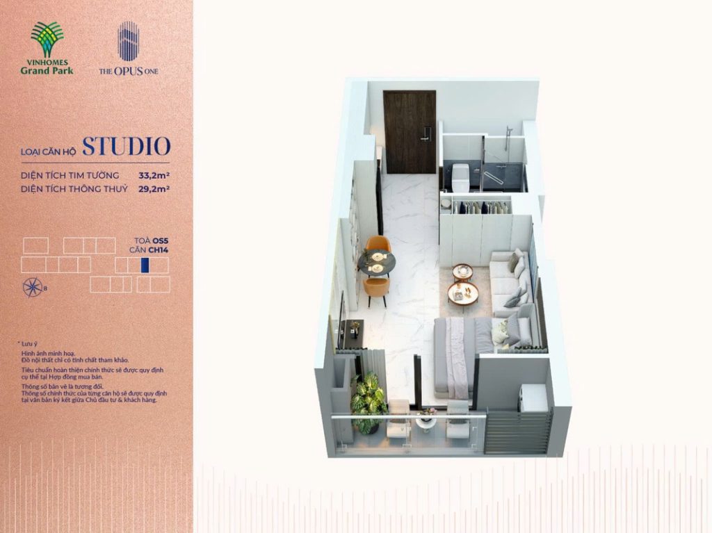 Căn hộ tại The Opus One – Vinhomes Grand Park được thiết kế hiện đại, sang trọng với bố trí hợp lý tối ưu hóa ánh sáng và không gian. Dự án cung cấp đa dạng các loại căn hộ với diện tích từ 50 m² đến 100 m², phù hợp với nhu cầu của các hộ gia đình nhỏ đến lớn. Các căn hộ 1 phòng ngủ thích hợp cho những người độc thân hoặc cặp đôi trẻ, trong khi đó, các căn hộ 2 và 3 phòng ngủ cung cấp không gian rộng rãi cho các gia đình. Không chỉ chú trọng đến diện tích, thiết kế căn hộ còn được chăm chút với nội thất cao cấp và trang thiết bị hiện đại, mang đến một cuộc sống tiện nghi và thoải mái nhất cho cư dân.