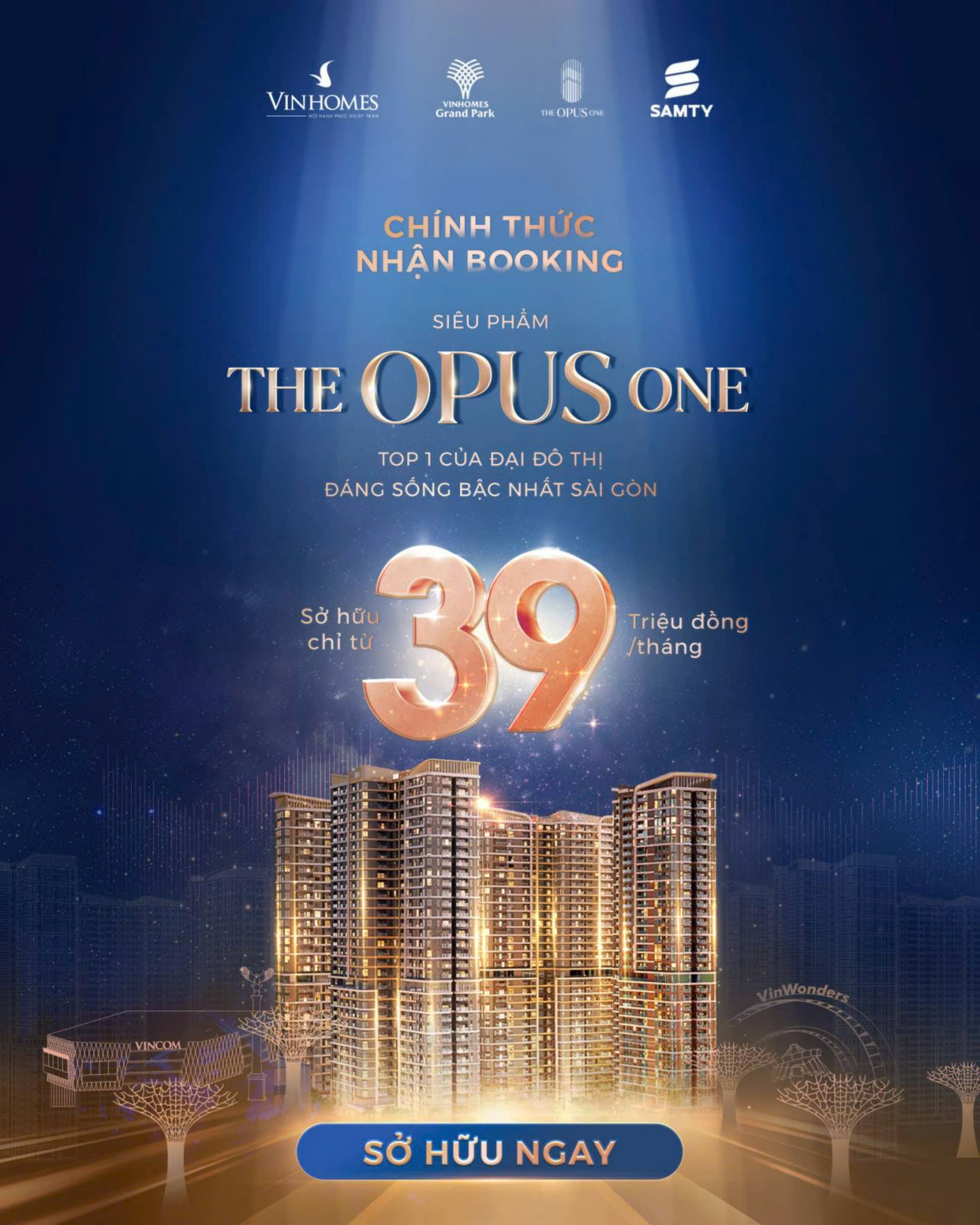 The Opus One Vinhomes là phân khu thuộc đại đô thị Vinhomes Grand Park – một trong những dự án nổi bật trong phân khúc bất động sản cao cấp tại khu Đông Sài Gòn. Opus One không chỉ được xây dựng với tiêu chuẩn quốc tế mà còn được chú trọng vào thiết kế và tiện ích, hứa hẹn mang đến cho cư dân một không gian sống hoàn hảo. Với vị trí đắc địa và hệ thống tiện ích đồng bộ, The Opus One Vinhomes mở ra cơ hội đầu tư hấp dẫn cho những ai đang tìm kiếm một nơi an cư lạc nghiệp lý tưởng.